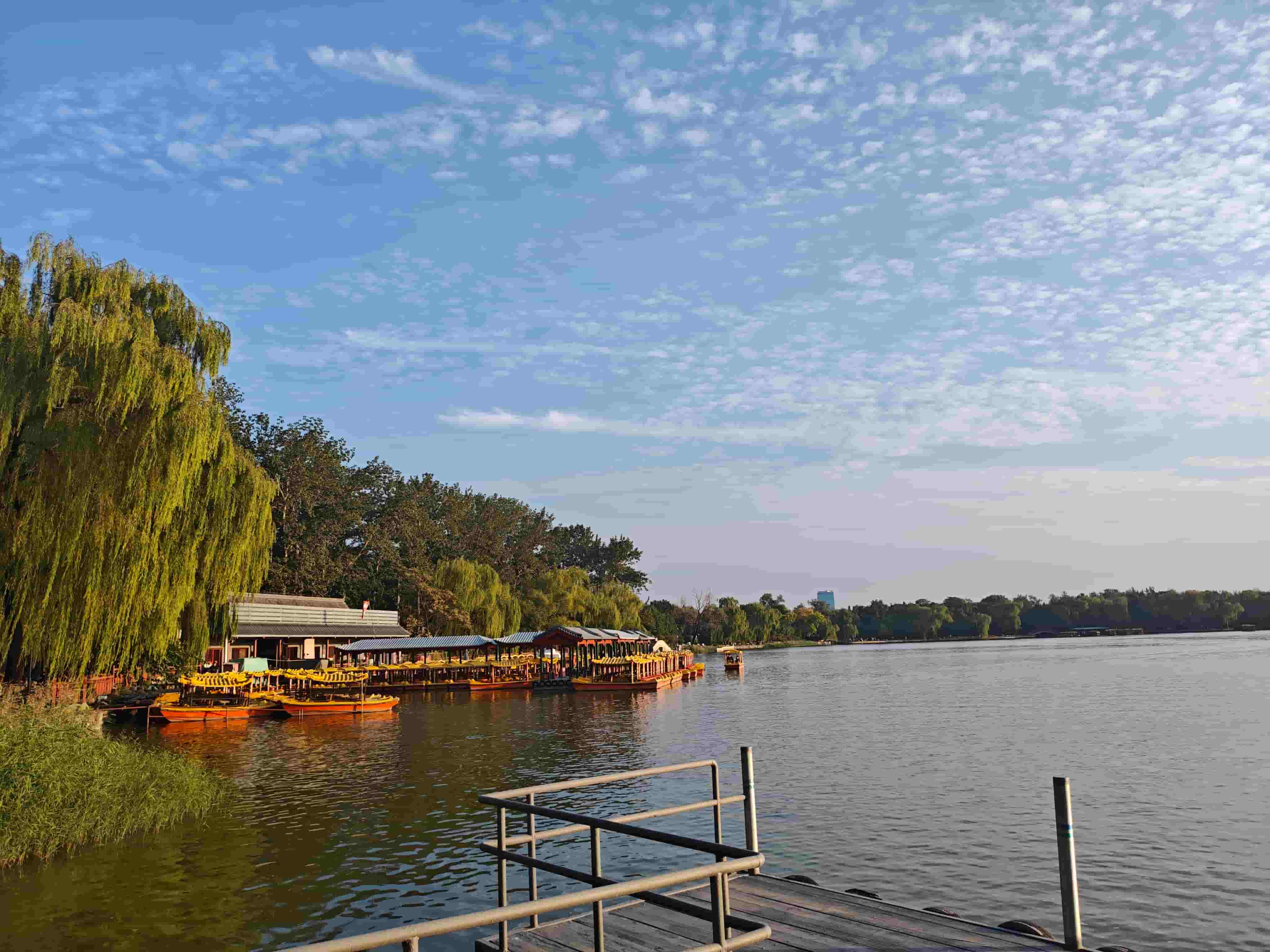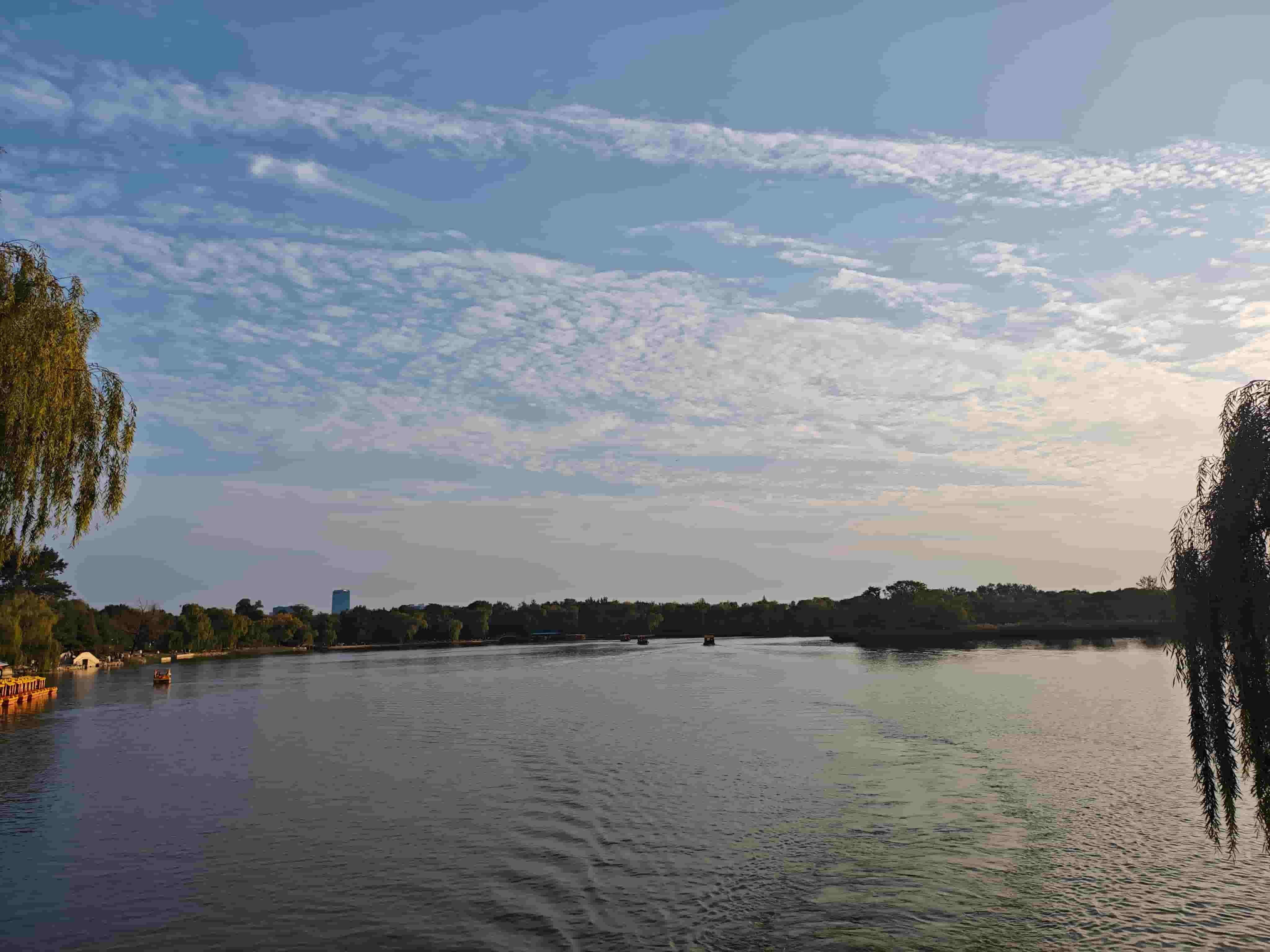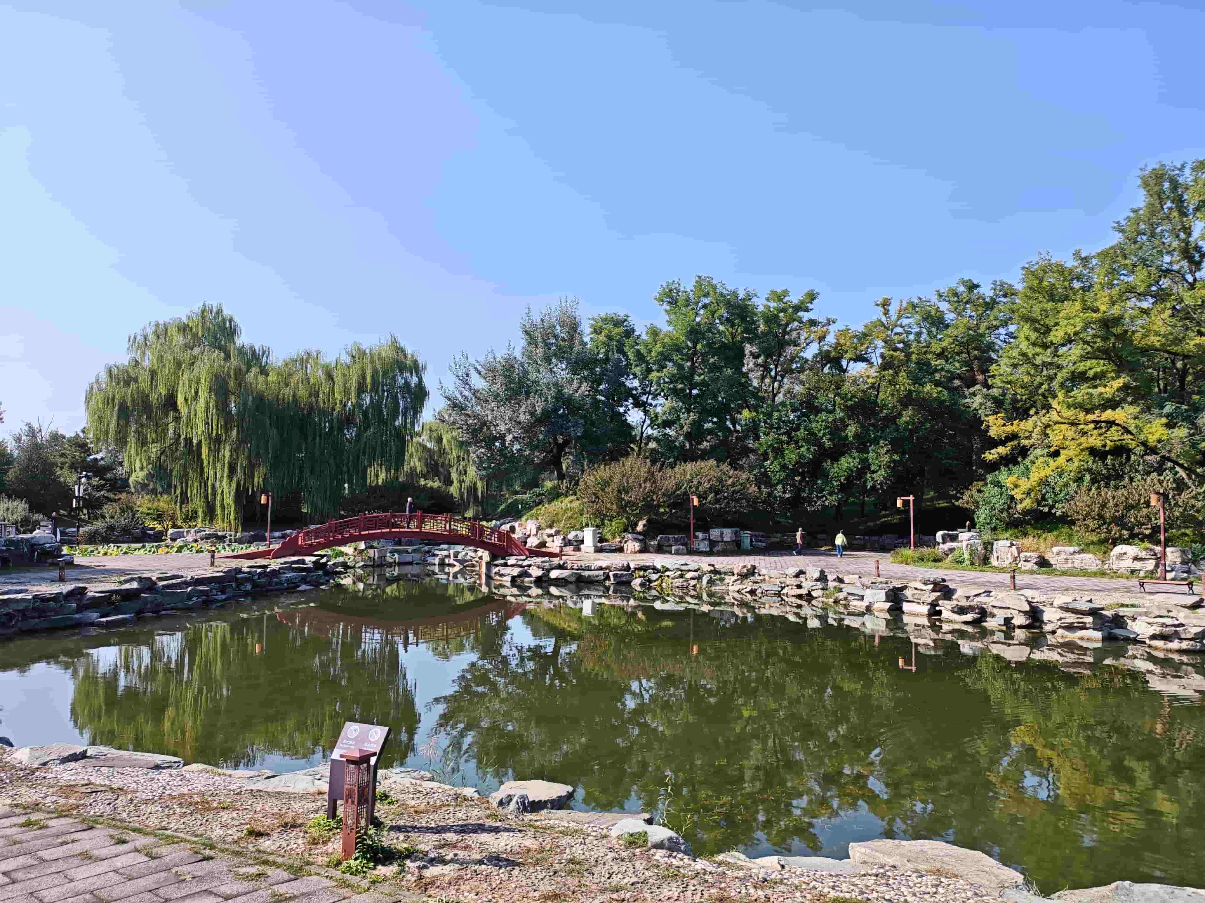进入公园的第一眼还是比较震惊的,皇家园林就是不一样。因为文化水平有限,就去网上搜了一句诗。柳岸风轻翻画扇,徜徉美景醉弗还。《七律·北海秋颂》中的这句诗,形容了秋风轻拂柳岸,柳丝飘动如打开的画扇,游人沉醉于美景之中流连忘返。
