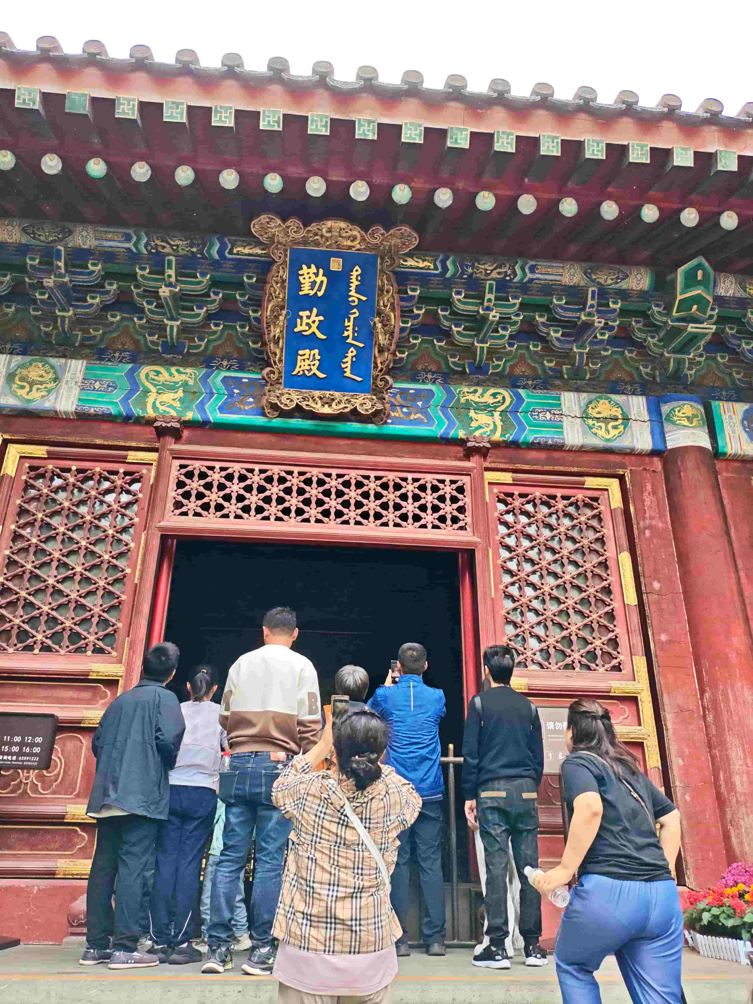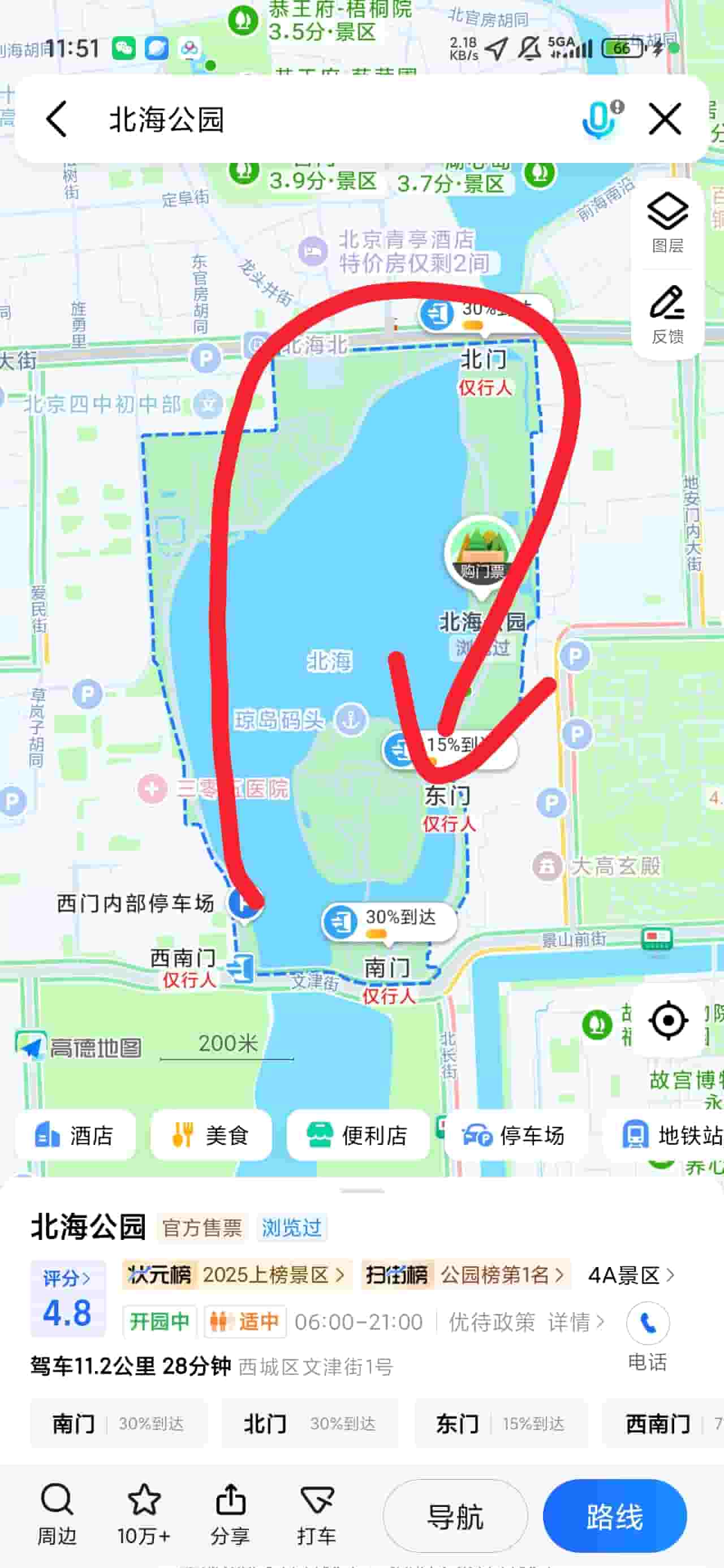 从学校坐地铁到北海北地铁站下车,全程大概40分钟。下了地铁就是经典的北京景点外观,红墙黄瓦。下了地铁沿着西安门大街向东步行约600m就可以到达北海的西南门。游园的顺序大概为从西南门进去,玩一圈从南门出。