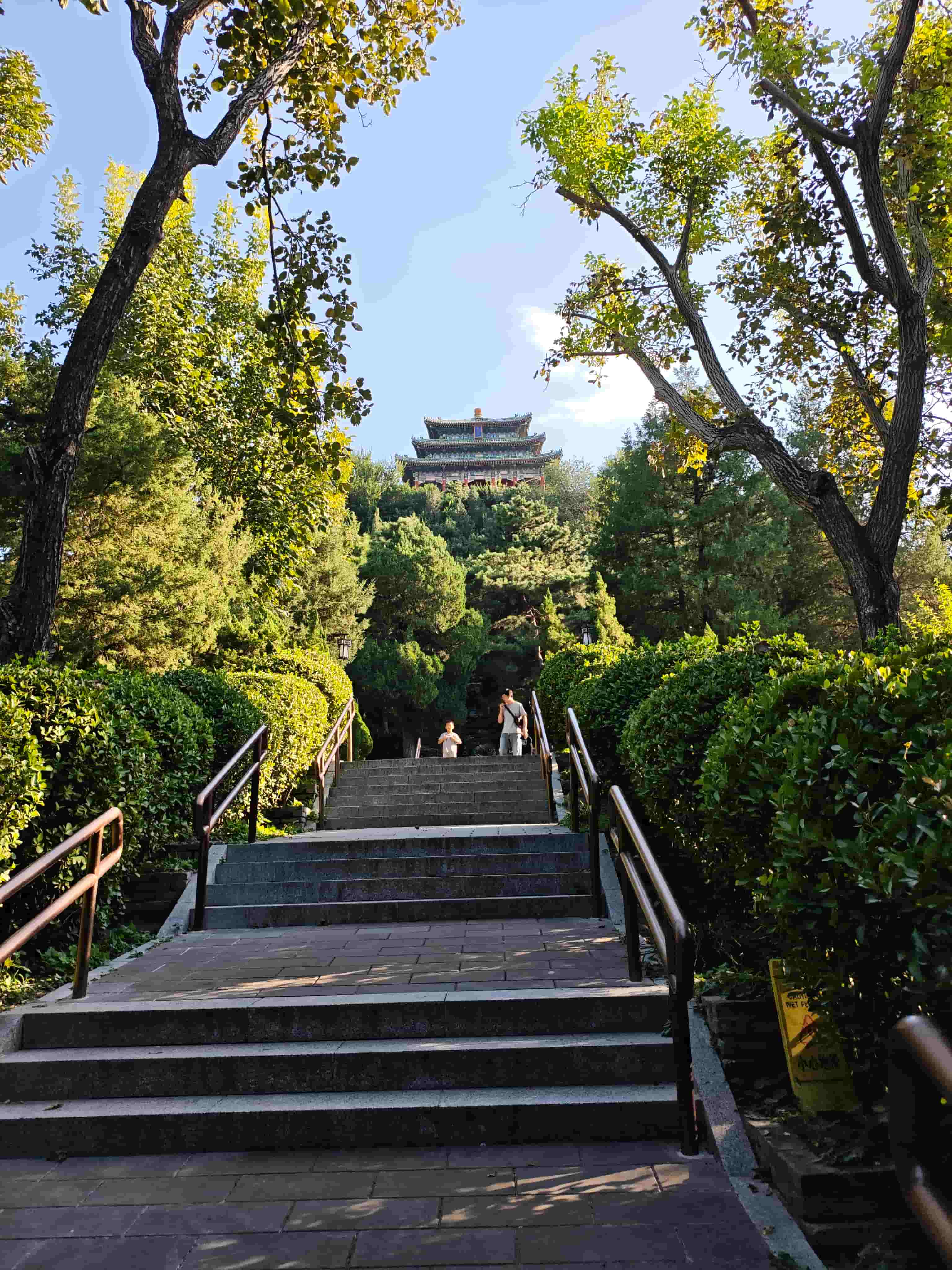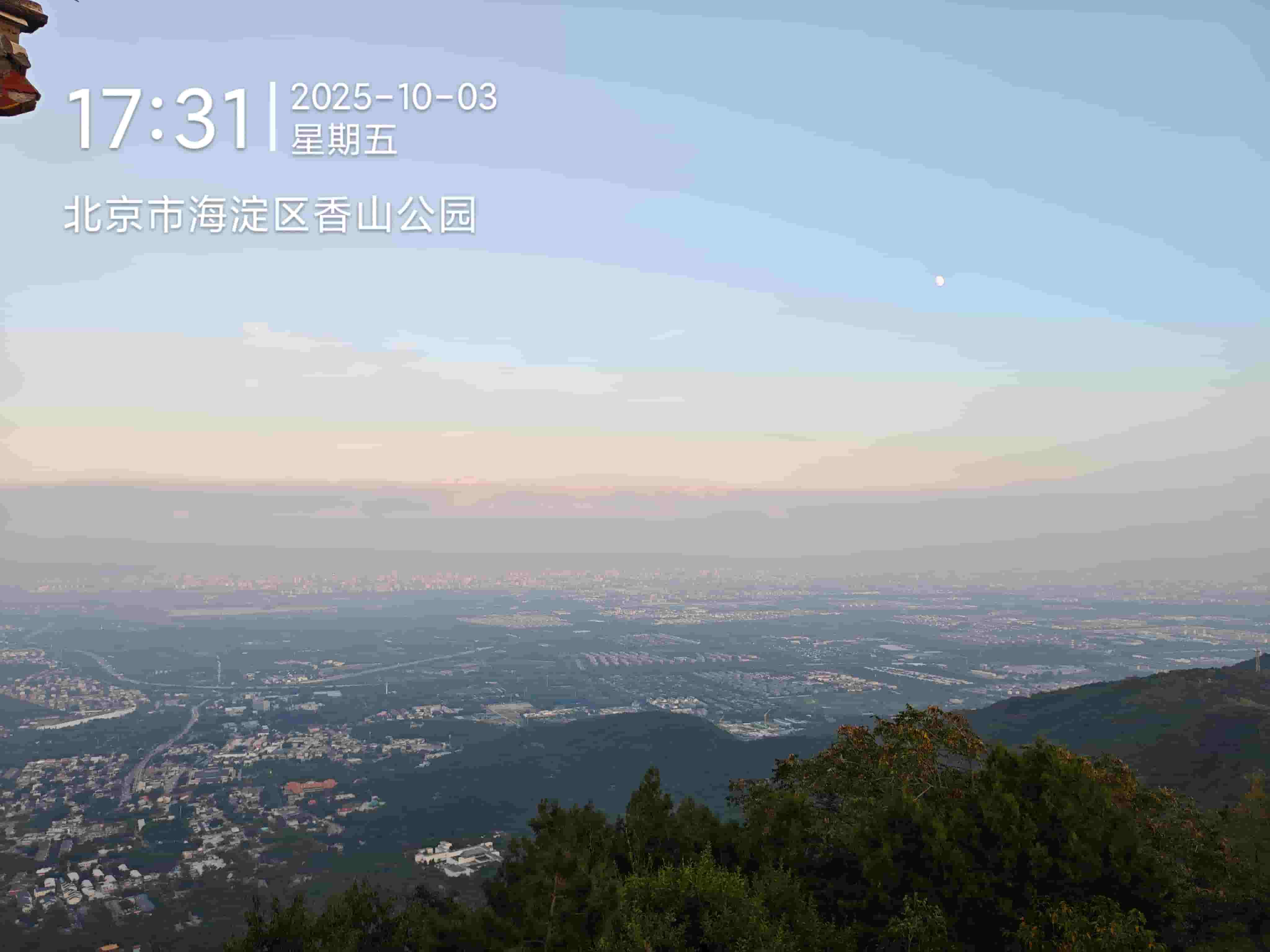 全景路线:东门进→勤政殿→静翠湖→双清别墅一香山寺→香炉峰→玉华岫→琉璃塔一昭庙一见心斋一北门出(约需2-3小时)。香山公园其实并不并不太高,海拔海拔大概有575m左右,但是爬的时候其实是挺累的。可能是因为国庆节这几天出去玩的比较多,也有可能最近这个锻炼的比较少,身体这个体能不如以前。香山公园里面的景色其实比比较一般,可能是来了这个时间不太对。人也人也不太多,但是刚好。下了地铁向南走就一个小吃街,小吃街里面卖的东西就非常多,也非常的热闹,但是也是比较不便宜的。来香山的目的其实就是为了去俯瞰北京城。另外,来香山的目的其实也很直白。就是之前听说非常多的学术会议,就如这个香山会议啥的,都在这个香山公园举办。所以想来看看这个地方。